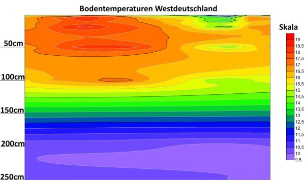 Bodentemperaturen vom 23.05.2016 bis zum 14.06.2016, für den Westen Deutschlands.
