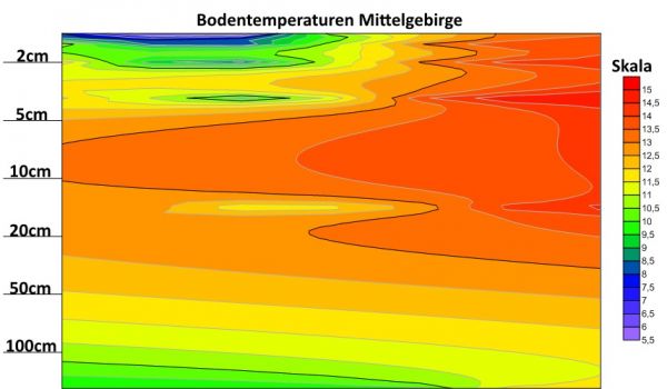 Bodentemperatruen vom 08.06.2016 bis zum 14.06.2016, für das Mittelgebirge.
