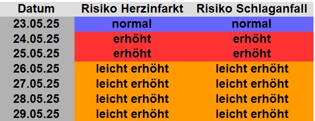 Die Schlaganfall- und Herzinfarktrisiken bis zum 29.05.2025