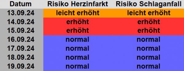 Herz- / Kreislauf-Wetter bis zum 19.09.2024.