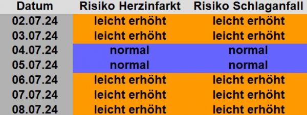 Die Schlaganfall- und Herzinfarktrisiken bis zum 08.07.2024