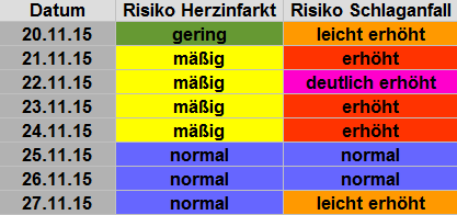 20. - 27.11.2015: In den nächsten Tagen vor allem erhöhtes Schlaganfall-Risiko