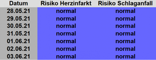 Die Schlaganfall- und Herzinfarktrisiken bis zum 03.06.2021