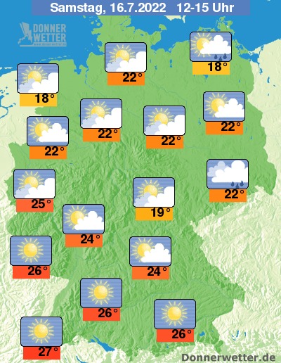 Heute Nachmittag sind im Osten und Nordosten noch vereinzelt Schauer möglich, sonst ist es schon überwiegend locker bis wechselnd bewölkt und trocken. Im Südwesten ist es weitgehend sonnig. Die Temperatur liegt bei 18 Grad an den Küsten und rund 27 Grad im Breisgau.