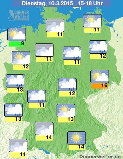 Heute Nachmittag bleibt es nach Osten und Südosten hin noch oft heiter oder aufgelockert bewölkt und weitgehend trocken, sonst ziehen dagegen meist dichte Wolken durch und es fällt auch zeitweise Regen. Von Nordwesten her lockert die Bewölkung im weiteren Verlauf aber immer weiter auf und nachfolgend bleibt es trocken. Die Temperatur liegt bei 9 Grad in Ostfriesland und 16 Grad in Dresden.