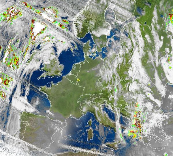 Auf dem Satellitenfoto von heute Morgen zeigen sich sehr große Teile Europas wolkenlos oder auch nur locker bewölkt. Tiefdruckgebiete südlich von Island sowie über Finnland bringen hingegen dem Norden der Britischen Inseln und auch in Teilen von Skandinavien sehr unbeständiges und oft kühles Wetter mit zum Teil kräftigen Regenfällen.