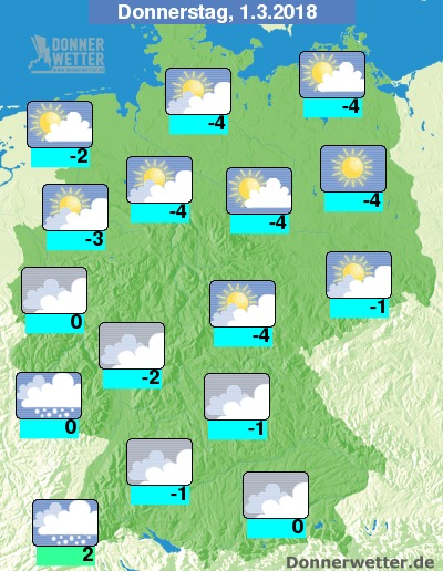 Die Temperaturen bewegen sich weiterhin auf meist frostigem Niveau und erreichen im Tagesverlauf Höchstwerte um -4 bis +2 Grad C.