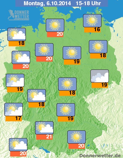 Der Start in die neue Woche ist etwas durchwachsen. Tiefausläufer bringen vielfach feuchtere Luftmassen heran. Am Montag werden sie wahrscheinlich nur den Westen erreichen können, so dass die Sonne vor allem in der Mitte und im Osten noch gut scheinen kann. Oft bleibt es trocken, im Westen kann es etwas regnen. Es werden 15 bis 21 Grad erreicht.