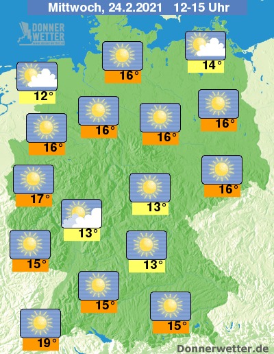 Heute Nachmittag scheint im Land verbreitet die Sonne und es ziehen kaum Wolken durch. Im Küstenumfeld sind hier und da jedoch einige, meist lockere Wolken unterwegs, es bleibt aber überall trocken. Die Temperatur steigt auf 12 Grad an der Nordsee und etwa 19 Grad im Oberrheingraben.