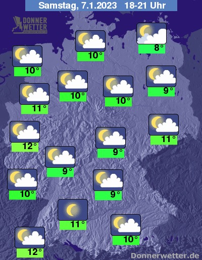 Heute Abend zeigt sich der Himmel auch über dem Norden oft locker bis aufgelockert, sonst generell überwiegend locker bewölkt. Bei Werten von 8 Grad in Neubrandenburg und 12 Grad in Köln bleibt es landesweit trocken. An der Nordsee weht ein zunehmend stürmischer Wind.