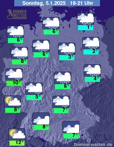 Heute Abend lockert es im Südwesten gebietsweise auf, hier bleibt es trocken. Weiter nach Nordosten hin ziehen hingegen kompakte Wolken durch, dabei fällt im Nordosten noch zum Teil Schnee, ansonsten fällt verbreitet, teils langanhaltend Regen. Die Temperatur liegt bei 1 Grad an der Müritz und bis 12 Grad im Breisgau. Über der Nordhälfte weht ein starker, teils auch stürmischer Wind, an der Nordsee herrscht teils Sturm.