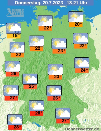 Heute Abend sind lediglich in Nordseenähe noch weitere Schauer möglich. Im übrigen Land ist es oft heiter oder es ziehen einige, meist noch aufgelockerte Wolken durch, dazu bleibt es trocken. Die Temperatur liegt bei kühlen 18 Grad an der Nordsee und bis 28 Grad am Oberrhein.