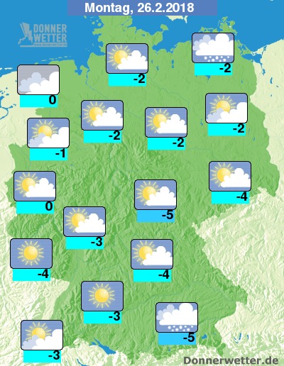 Meist gelungener Wochenauftakt bei Höchstwerten um -5 bis 0 Grad C.