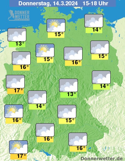 Die Temperaturen erreichen am Nachmittag Höchstwerte um 13 bis 17 Grad, entlang des Rheins lokal auch Werte um 19 Grad.