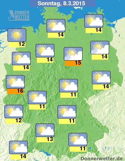 Hoch "Karin" ist es zu verdanken, dass wir heute einstellige Temperaturen vergeblich auf der Wetterkarte suchen. Die Tageshöchstwerte liegen am Sonntag bei Temperaturen um 11 Grad C in Mittelfranken und milden 16 bis 18 Grad C im Westen.