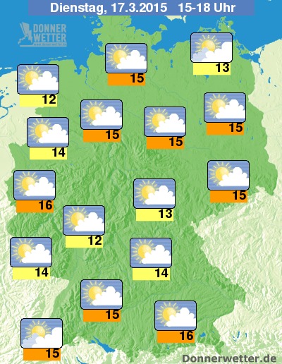 Heute Nachmittag ist es verbreitet heiter oder sonnig. Im Norden und Westen Deutschlands ziehen zeitweise auch dichtere Wolken durch, diese bringen jedoch keinen Regen. Die Temperatur liegt bei frühlingshaften Werten von 12 Grad am Spessart und um 16 Grad in München.