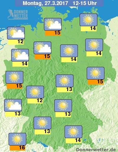 Heute Nachmittag strahlt die Sonne über Deutschland von einem meist stahlblauen Himmel. Nur hier und da können auch mal ein paar harmlose Wolkenfelder durchziehen, dabei bleibt es trocken. Die Temperatur steigt auf Werte zwischen 12 und 16 Grad.