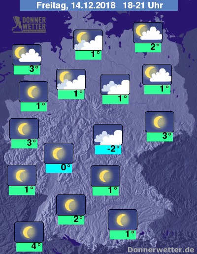 Bis Mitternacht klart es auch über Thüringen teilweise auf und die Temperaturen sinken allgemein in den frostigen Bereich.