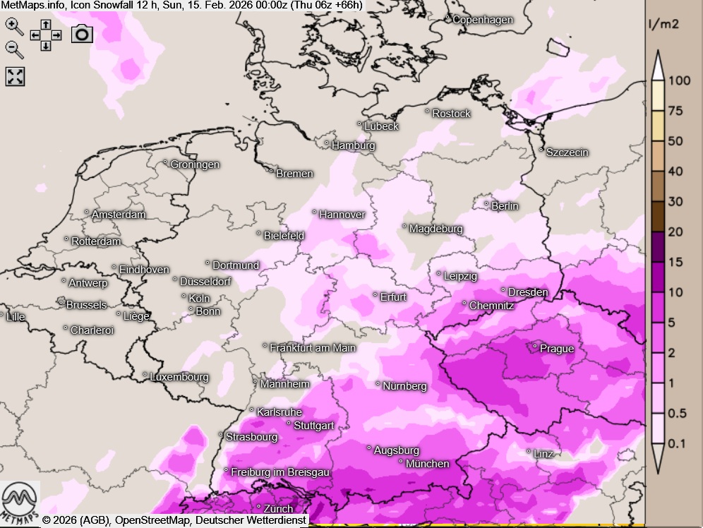 Werte am Samstagnachmittag um -3 bis 5 Grad.