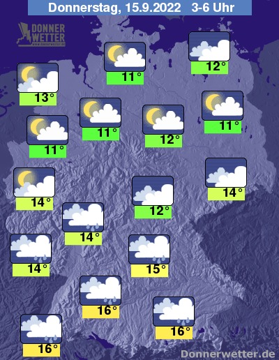 In der Nacht zum Donnerstag ist der Himmel über der Nordhälfte der Republik oft nur locker, hier und da jedoch auch stark bewölkt, dazu bleibt es weitgehend trocken. Im Süden bringen kompakte Wolken hingegen zeitweise Schauer. Die Temperatur sinkt auf 16 Grad in München und 11 Grad in Berlin.