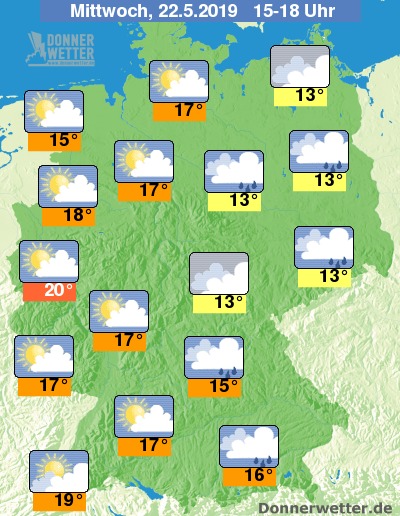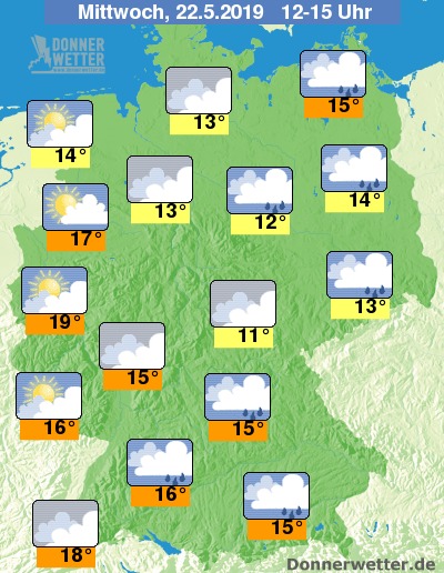 Bis zum Abend lockern die Wolken in der gesamten Westhälfte allmählich auf und die Sonne lässt sich gelegentlich blicken. Im Osten und Süden tröpfelt es weiter.