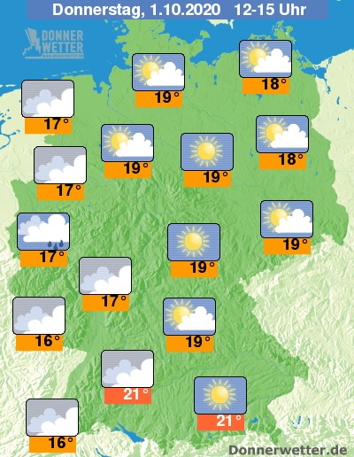 Bis zum frühen Abend breitet sich meist leichter Regen im Westen aus, auch im Nordosten ziehen von der Oder dichtere Wolken ins Land. Es bleibt hier jedoch trocken. In den anderen Gebieten scheint weiterhn die Sonne im Wechsel mit meist nur lockeren Wolkenfeldern.
