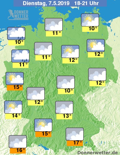 Die Temperaturen bewegen sich am frühen Abend meist zwischen 10 und 13 Grad, im Süden und Westen können stellenweise auch etwas mildere 14 bis 17 Grad erreicht werden.