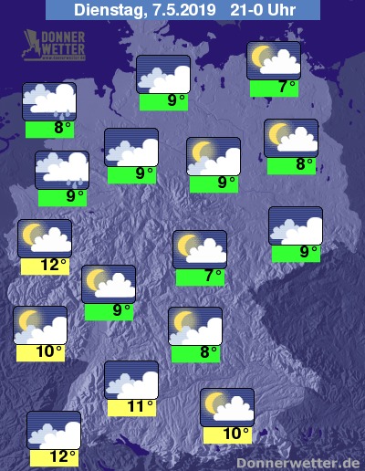Der Wind schläft verbreitet ein. Gegen Morgen dreht er auf Ost bis Süd und beginnt vor allem im Westen etwas aufzufrischen.