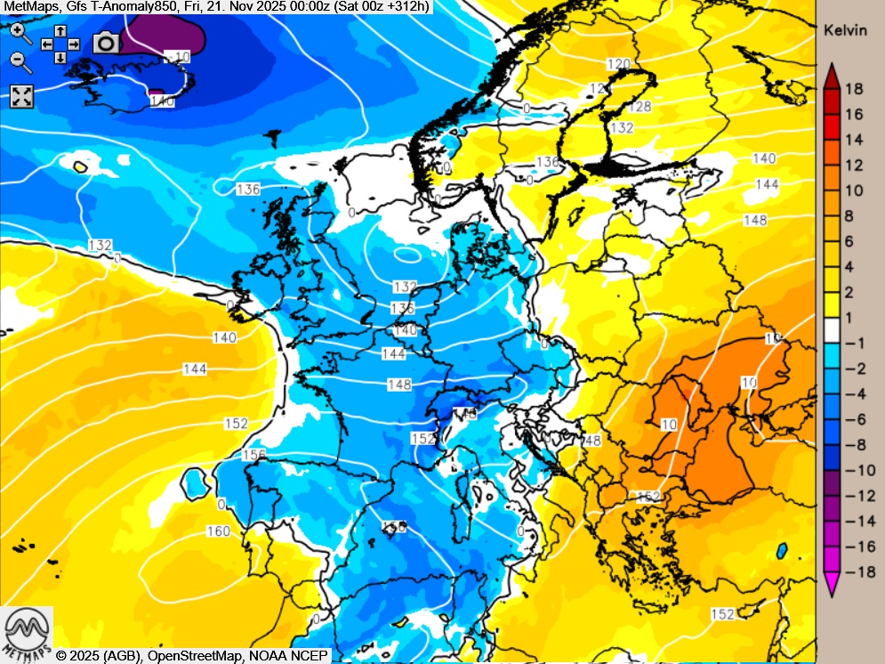Die aktuellen Wettermodelle deuten weiterhin auf eine mögliche größere Wetterlagenumstellung in der zweiten Novemberhälfte hin. Die bis dahin rechnenden Modellläufe sehen diesen ab dem 19./20.November.