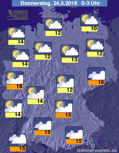 In der Nacht auf Donnerstag lassen die Schauer im Süden immer mehr nach, der Himmel ist hier teils dicht bewölkt oder bedeckt, teils aufgelockert bewölkt. Im Norden des Landes dominieren lockere Wolken.
