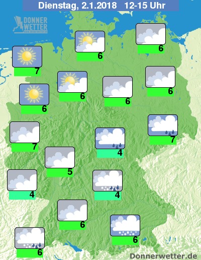 Heute Nachmittag scheint vom Emsland bis zur Nordsee häufig die Sonne. In der übrigen Nordwesthälfte Deutschlands bleibt es hingegen eher stark bewölkt, jedoch ebenso trocken. Im Süden und Osten fällt unter dichter Bewölkung gebietsweise Regen. Richtung Alpen und Bayerischer Wald auch Schneeregen oder Schnee. Die Temperatur liegt bei 4 bis 7 Grad.