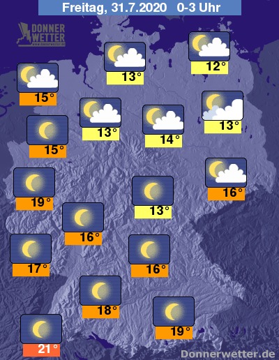 In der Nacht auf Freitag bleibt es in der Nord- und Osthälfte Deutschlands vorwiegend locker bewölkt, im Süden und Westen funkeln die Sterne von einem meist wolkenlosen Himmel. Es bleibt trocken.