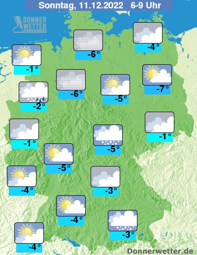 Tiefstwerte Sonntagfrüh um -1 bis -7 Grad.