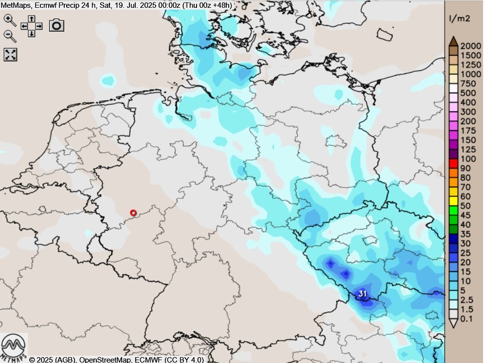 Am Freitag sind im Norden und Osten bei wechselnder Bewölkung noch zeitweise Schauer und einzelne Gewitter möglich; in den übrigen Landesteilen dominiert heiteres Juliwetter, im Süden und Südwesten ist es auch sonnig, und es bleibt trocken.