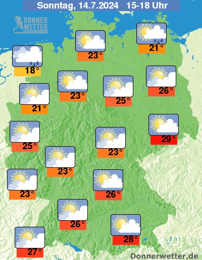 Die Temperaturen gehen zurück auf Werte um 17 Grad südlich der Donau und 11 Grad in Franken.