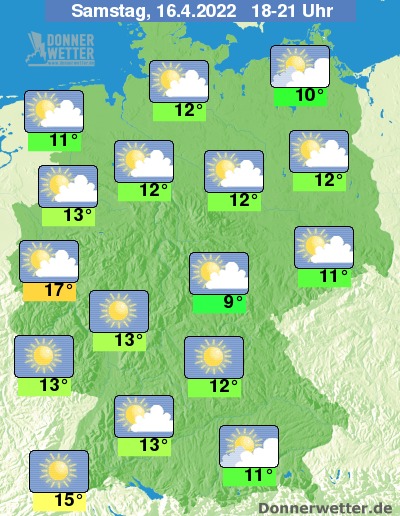 Heute Abend zeigt sich das Wetter größtenteils heiter oder sonnig. Hier und da, aber bevorzugt an den Alpen können sich auch teils dichte Wolken halten, es bleibt aber selbst hier weitgehend trocken. Die Temperatur liegt bei 9 Grad in Jena und bis 17 Grad in Köln.