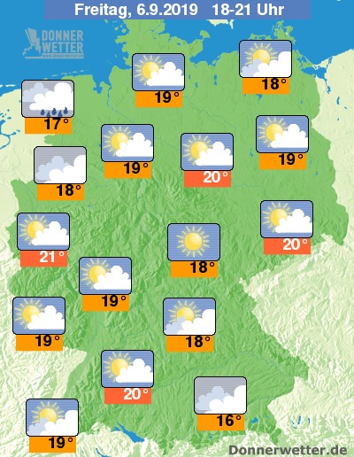 Die Temperaturen bewegen sich am frühen Abend zwischen 16 und 21 Grad. Am wärmsten ist es dabei noch in der Kölner Bucht.
