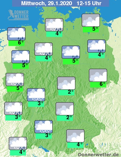 Am frühen Nachmittag bleibt es abgesehen einiger Auflockerungen mit etwas Sonnenschein dicht bewölkt. Insbesondere nach Westen und Norden hin treten Niederschläge oder Schauer auf, die etwa zwischen 300 und 500 m als Schnee fallen können. In höheren Lagen muss daher weiterhin mit Glätte gerechnet werden.