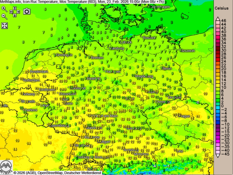 Die Temperaturen erreichen Höchstwerte um 9 bis 14 Grad.