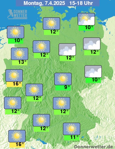Am Montagnachmittag ziehen über die Osthälfte zeitweise dichtere Wolkenfelder hinweg. In den übrigen Landesteilen setzt sich das sonnige Wetter der vergangenen Tage fort. Es bleibt niederschlagsfrei.