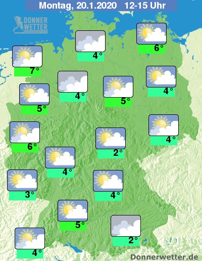Die Temperaturen erreichen am Nachmittag Höchstwerte um 2 Grad im Thüringer Wald und um 7 Grad an der Nordseeküste.
