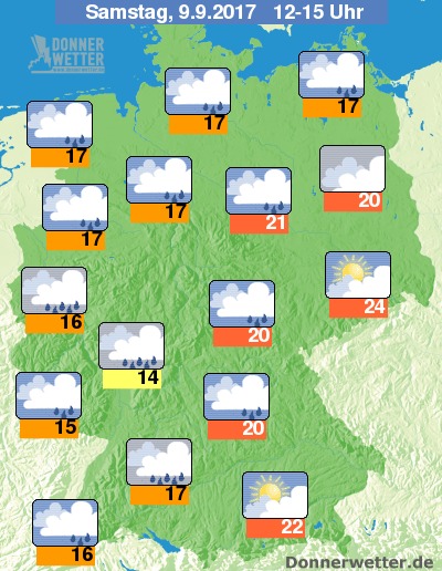 Je später die Stunde desto besser das Wetter? An diesem Samstag leider nicht... Auch am späteren Nachmittag und frühen Abend schauert oder regnet es verbreitet, die Temperaturunterschiede bleiben mit Werten um 15 Grad C im Südwesten und um 24 Grad C in der Sächischen Schweiz vergleichsweise groß.