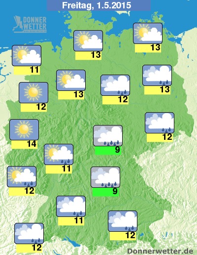 Wetterbesserung zum 1. Mai: Am Tag der Arbeit stören nur wenige Schauer bei 13-15 Grad C.  Dei Sonne ist immer wieder dabei!