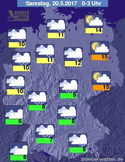 In der auf Samstag ist der Himmel überwiegend bedeckt und in der ersten Nachthälfte regnet es häufig. Später lässt der Regen dann etwas nach, aber es ist weiterhin mit Schauern zu rechnen. Von der Ostseeküste bis ins Erzgebirge bleibt es zunächst trocken, aber später ziehen auch dort Regenwolken auf.