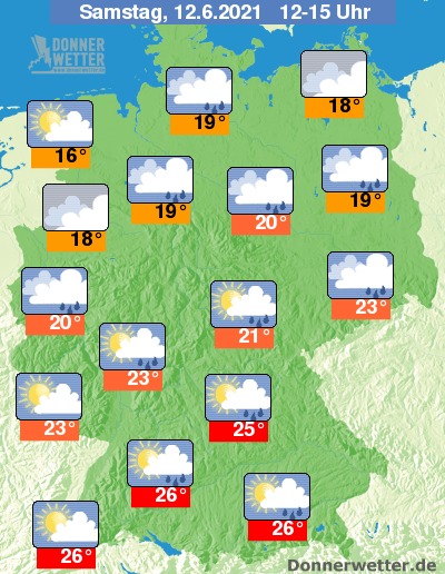 In den Nachmittagstunden zeigt sich der Himmel über dem Norden und Osten der Republik teils wechselnd oder stark bewölkt, teils bedeckt und immer wieder muss mit Schauern gerechnet werden. Auch einzelne Gewitter, die lokal mit Starkregen einhergehen können, sind möglich. Dabei weht ein mäßiger bis frischer, an der Ostsee und im Bergland auch böiger West- / Nordwestwind, der zum Abend hin aber nachlässt.