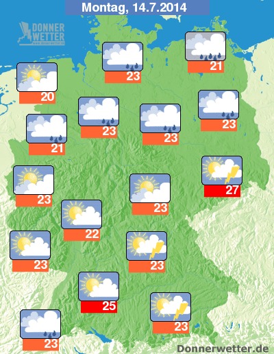 Im Norden schaurig, im Süden und Osten gewittrig, vom Westen bis in die Mitte häufig sonnig