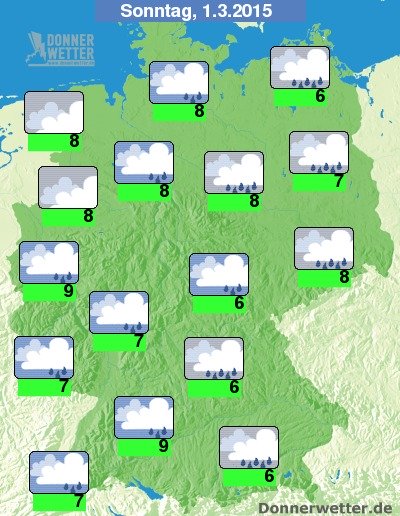 Heute ziehen verbreitet dicht Wolken durch, dazu fällt teils kräfter und auch langanhaltender Regen. Am Nachmittag werden die Regenpausen vor allem im Westen und Norden länger und es fällt nur noch gebietsweise Regen. Hier und da bleibt es dann auch trocken. Die Temperatur steigt auf 6 Grad in Oberbayern und bis 9 Grad am Niederrhein. Es weht oft frischer, teils auch starker Wind, dabei sind vor allem im Norden und Westen auch stürmische Böen möglich. An den Küsten und auf den Bergen sind Sturmböen möglich.