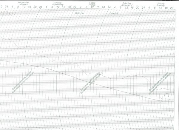 Auf Hoch folgt Tief - Luftdruckverlauf, der einer unserer Schreiber in der vergangenen Woche (Mittwoch bis Sonntag) aufgezeichnet hat.