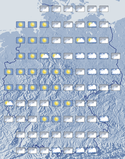 Am Dienstag im Süden und in Sachsen bedeckt und häufig Schneefall, sonst teils heiter, teils einige Wolken und trocken, gegen Abend im Westen und Nordwesten Regen, 0 bis 7 Grad.