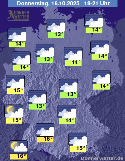 In der Nacht zum Freitag ist der Himmel weiterhin wolkenverhangen und Auflockerungen sind nur vereinzelt möglich. Häufig ist es auch neblig-trüb, Regen fällt aber kaum. Vor allem nach Südwesten hin zeigt sich der Himmel auch teils locker bewölkt. Die Temperatur sinkt auf 12 Grad in Cuxhaven und bis 7 Grad in Saarbrücken.